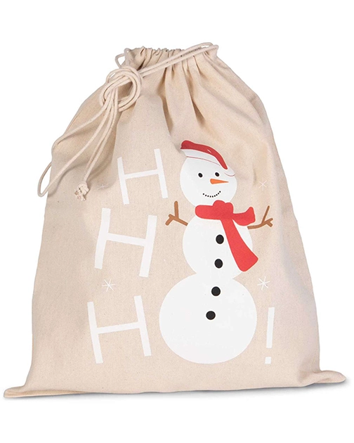 Geantă din bumbac cu șnur, având imprimat un om de zăpadă.